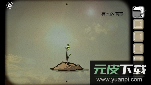 拿起场景右侧的花洒,走到水井边放入花洒,点击左侧滚动阀使其下降取水,再次点击滚动阀收回装满水的花洒。