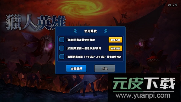 1、启动游戏后进入主界面,在此查看权限请求并选择登录方式;