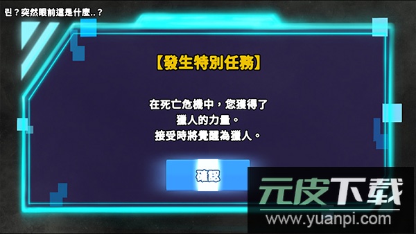 4、在剧情推进中,角色一度陷入危机,却意外获得猎人之力并觉醒,随后承接特殊任务;
