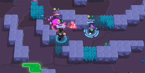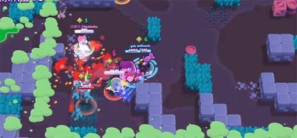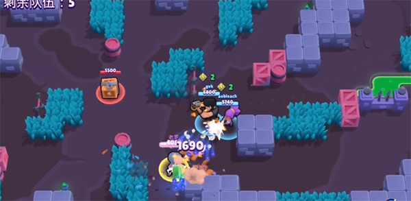 公牛的普通攻击是散射子弹,距离越远伤害越低。因此提升击杀率的关键第一步,是学会利用草丛隐藏自己,耐心等待伏击机会。