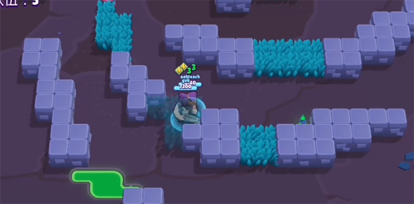 埋伏不仅能捕捉到路过的敌人,还能发挥公牛近战高伤害的优势。除非对手也是坦克,否则很难正面承受公牛的贴脸输出。如果觉得一直蹲守过于被动,可以缓慢移动到地图中央附近的草丛,观察周围战斗情况,趁敌人状态不佳时出手收割。