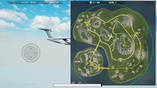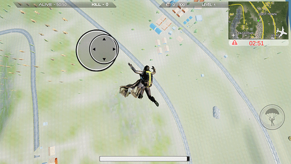 4、开局后通过地图选择落点,控制跳伞降落至目标区域;