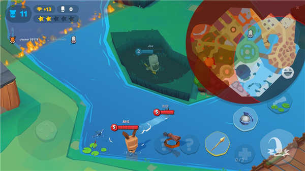 3、同时简化了物资获取过程,当前可用武器固定为三种,例如长矛与炸弹,保障了玩家能快速成长;补给品包括恢复生命值与增加护甲的类型,没有过于复杂的设定;另外,游戏的地图设计也颇具特色,每个区域都拥有独特环境效果,比如冰面可以滑行,进入草丛即可隐身;如何巧妙利用这些特殊地形,也是赢得胜利的关键一课。