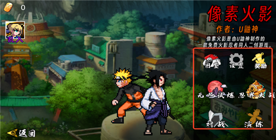 1、游戏采用像素风格呈现,玩家将扮演各具特色的火影角色展开热血格斗;