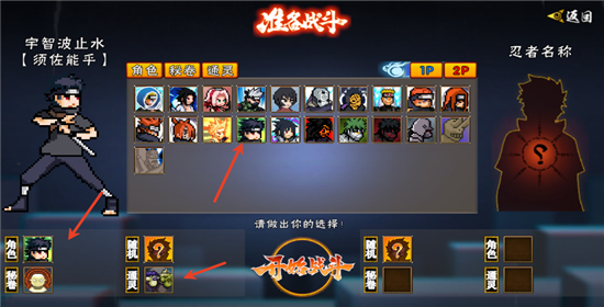 2、选择角色宇智波止水,并搭配秘卷与通灵兽,对手可设为随机;