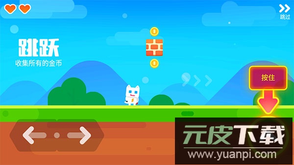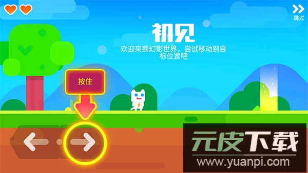 1、开始游戏后,按住屏幕左右的按键可以控制角色移动;