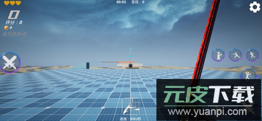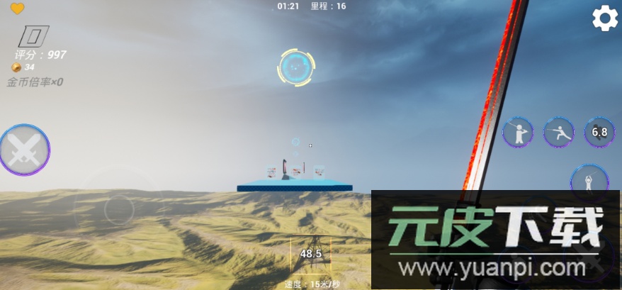 5、当画面出现黄色圆环提示时,迅速点击右侧钩锁按钮,即可瞬间穿越前方障碍。
