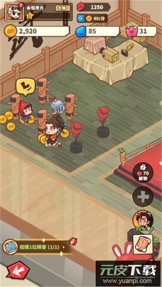 5、点击顾客上方的标识即可进行接待,推进经营进程;