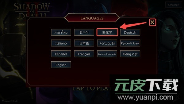 2、在语言列表中,找到并选择第三个简化字选项,随后点击右侧的关闭按钮确认。