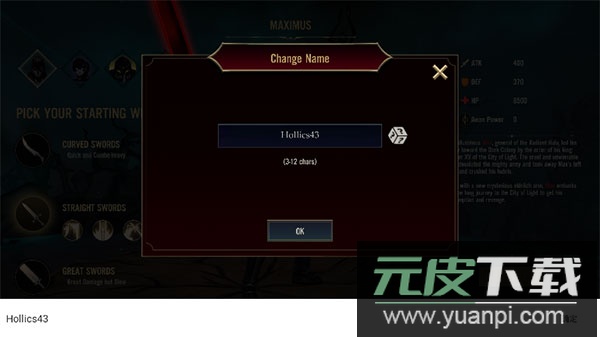 2、接下来,为你所选择的角色设定一个独特的名称。