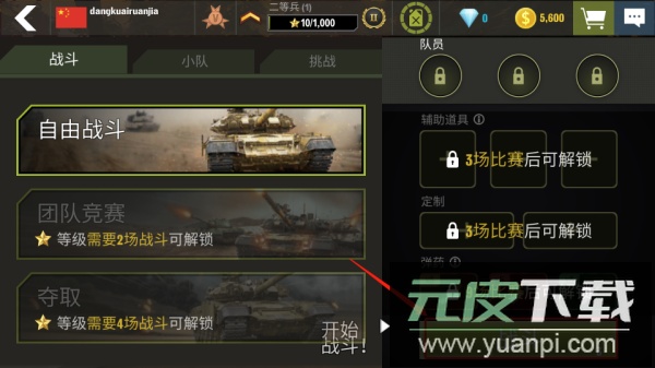 2、点击主界面中的“战斗”按钮即可准备进入战场;