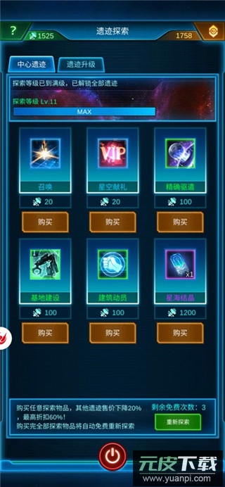 五、星海奇观每日提供五次免费刷新,消耗模组可购买技能与星海结晶,推动黑洞遗迹进度,开启后享有一次免费使用机会;