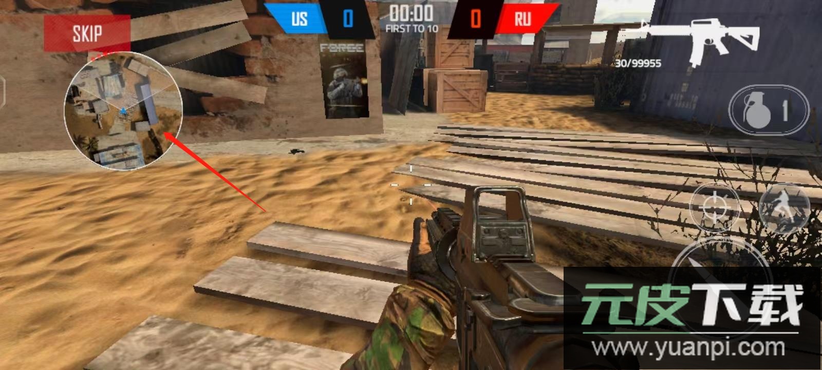 3、借助地图上的红色标记发现敌人位置,主动出击将其消灭;