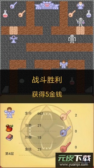 玩家通过方向键操控角色移动,接触怪物后会自动进入战斗流程;