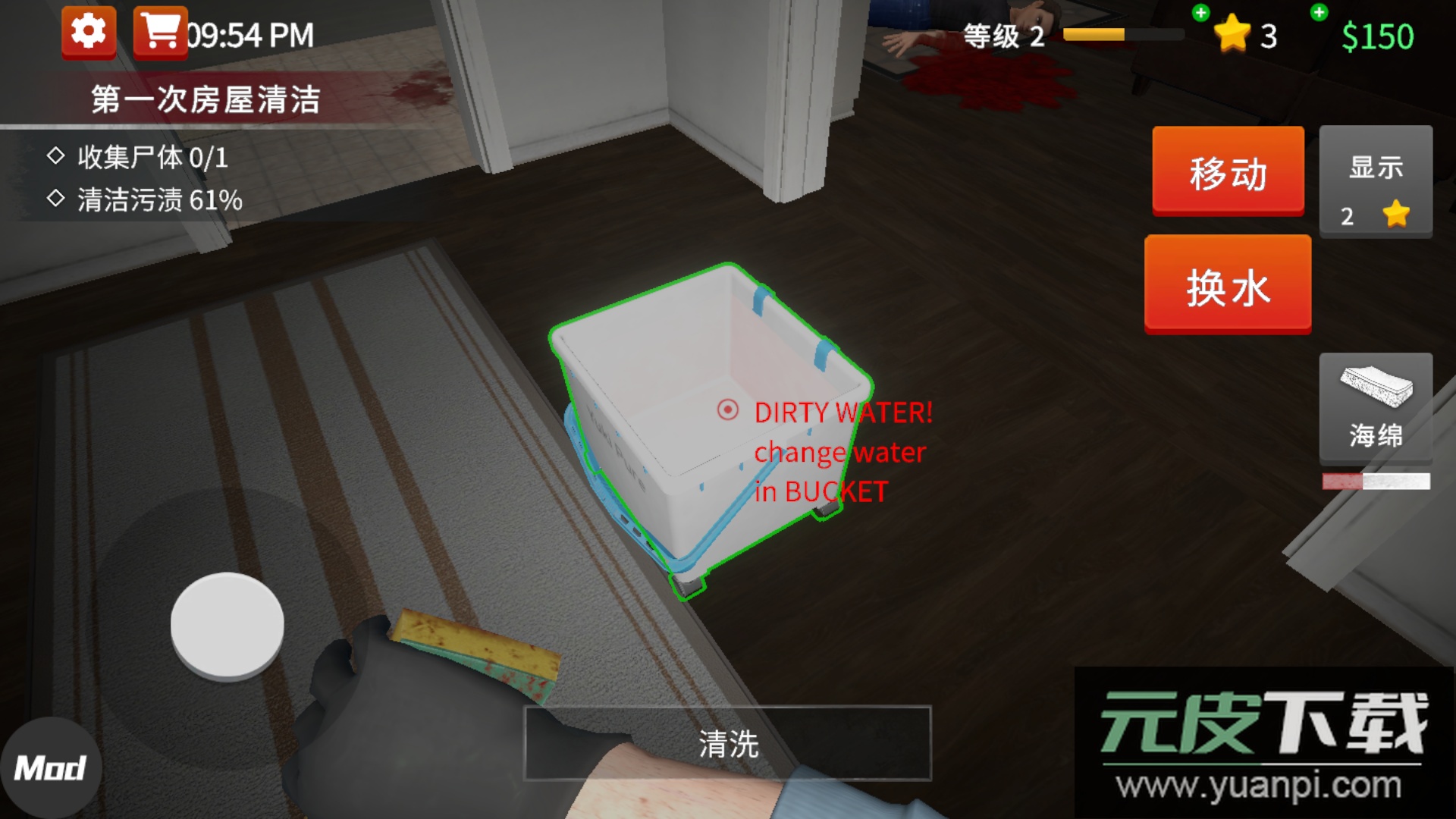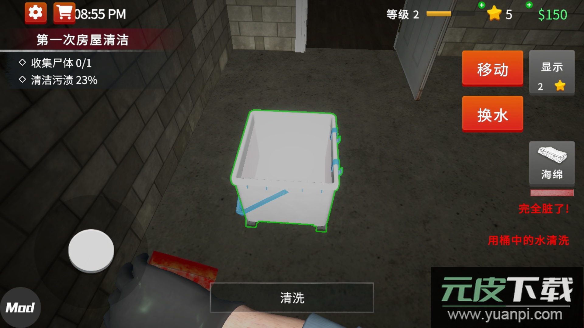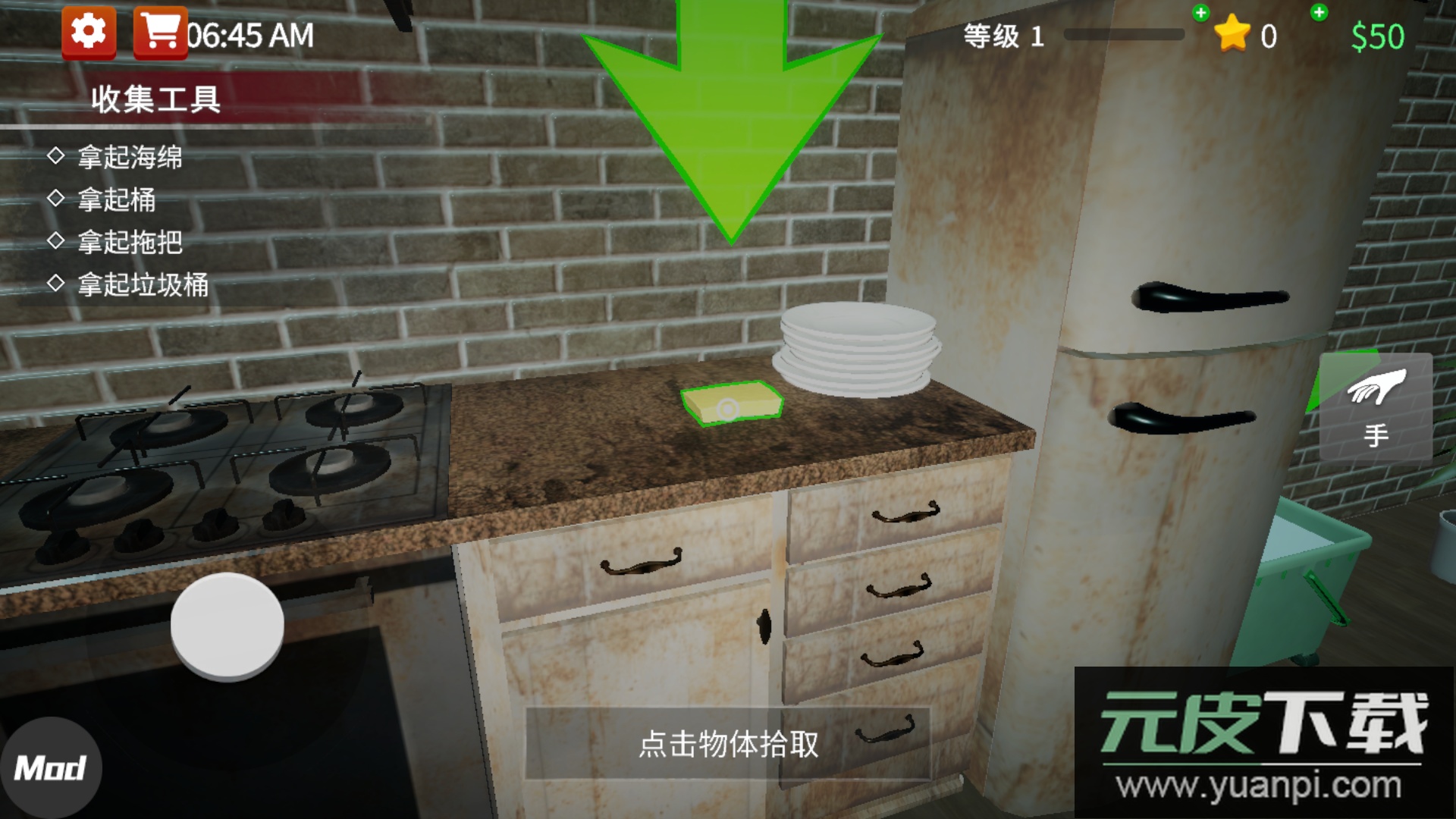 5、随着游戏进程,你可以解锁并运用多种专业工具,如拖把、海绵、强力清洁剂等,以应对不同场景的清洁需求。