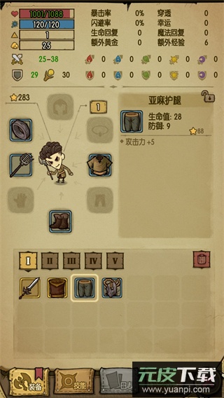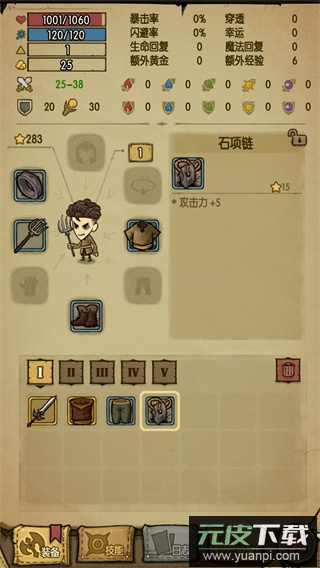 2、接着装备三件经验加成装备以及干草叉武器。