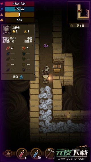 5、到达第五层时,注意避开生命值高达385的强力怪物。优先消灭其他敌人并开启宝箱。