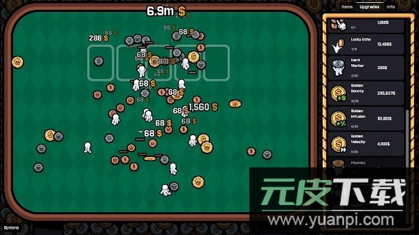 【购买硬币与升级】拥有的硬币数量越多,抛掷频率就越高。购买升级项目能提升抛掷速度并增加收益;探索不同硬币类型之间有趣的互动与协同效果。