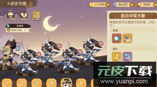 1、在步步为营模式中,敌方会派出不同阵容迎战,玩家需搭配合理队伍进行PVE挑战,逐步攻占军营;每日拥有5次免费挑战机会,次数用尽后可用元宝购买;挑战胜利扣除次数,失败不扣除;每次通关可获得青龙符、阵法精要等奖励,首次通关还可获得步步宝箱与阵法碎片。