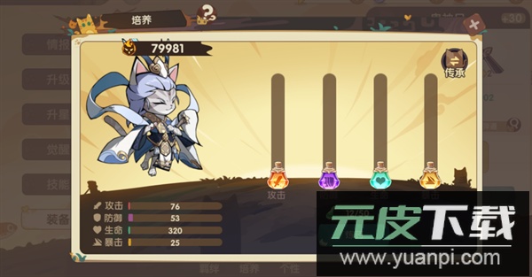 规则说明:消耗修炼药剂进行培养,会随机增减攻击、防御、生命、暴击四项属性;若出现属性降低,可使用蓬莱秘药消除减益,仅保留增益效果;属性值越高,培养难度越大;喵将等级与星级越高,培养上限也越高;喵将每提升10级,可对四项属性分别使用一次培养突破丹,属性值满后即可突破;进行喵将传承时,若属性超过继承角色上限,则按上限保留,同时突破丹使用次数也会继承。