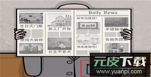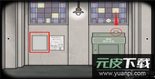 回到劳拉场景,使用手摇柄开启报刊冲洗店,取得报纸;交给候车大叔,对照新闻与标题排列正确后,从其口袋摸走硬币。