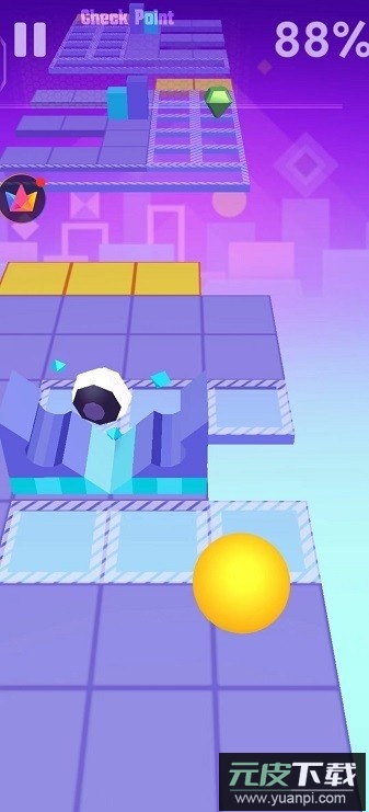 1、对于初次接触的玩家,每一关都具备一定挑战性,需要精准控制手指滑动的距离与速度,并灵活躲避各类障碍。好在第一关整体速度较缓,障碍物较少且部分仅为装饰,通关难度不高。游戏起始阶段道路较为宽阔,但需留意带有花纹的砖块,小球靠近时会突然升起形成柱状障碍,容易让人措手不及。因此应优先选择橙色道路行进,滑动时力度需适中,避免因用力过猛而从边缘滑落。