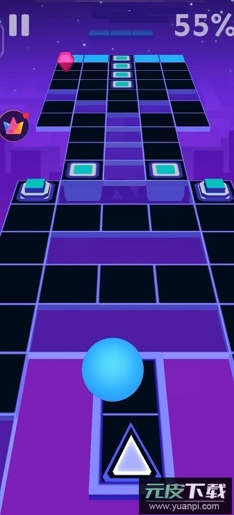 3、游戏中沿道路前进即可,钻石通常位于边缘位置,获取时注意不要掉下赛道。前方会出现跳跃方块,小球触碰后会自动弹起,此时无需额外操作,只需为其选择一个安全的落点。走上玻璃区域时,玻璃会依次碎裂下落,这仅是场景效果,保持镇定正常前进即可。需特别注意,当踏上中间颜色无空隙的整片玻璃区域时,该区域会整体塌陷,必须及时躲开。