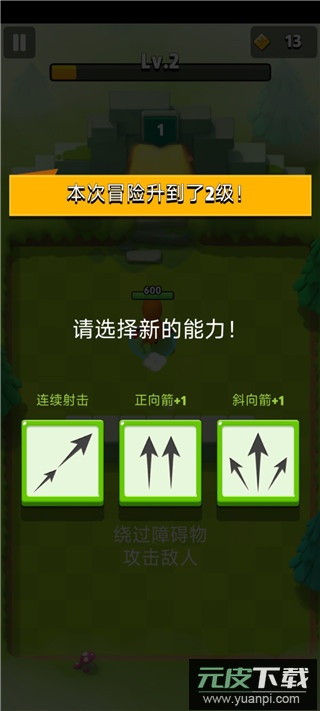5、每次升级或开启宝箱时,会随机出现三个技能供玩家选择其一,技能会为攻击附加特殊效果,提升输出能力;