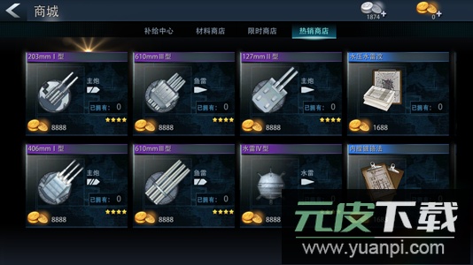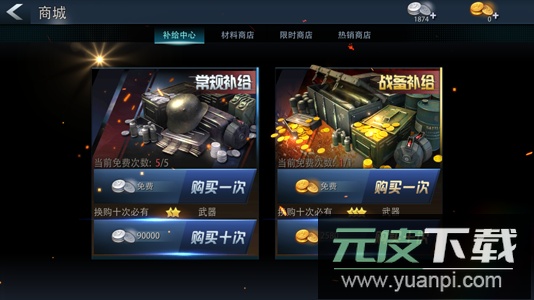 游戏内商城分为补给中心、材料商店、限时商店与热销商店四个板块。
