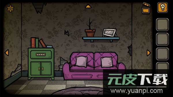 1、打开游戏点击开始,先熟悉界面布局。右侧为物品栏,用于收集关键道具;场景四周的黄色三角标志可切换视角;右上角灯泡提供提示,左上角齿轮则是设置入口。