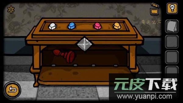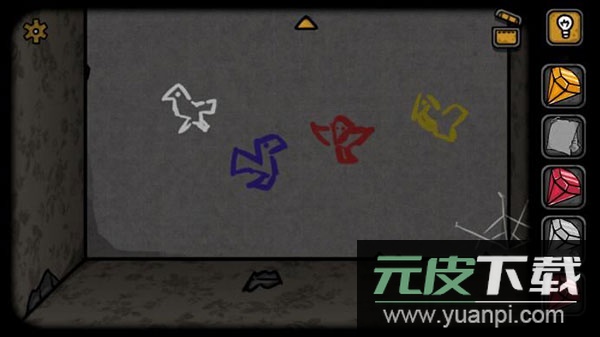 9、返回海报房间,点击地上的宝箱;依据小鸟颜色顺序排列钻石即可打开箱子,获得一枚印章。