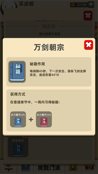 3、随机出现武学秘籍,自由组合搭配,决定敌人的落败方式;