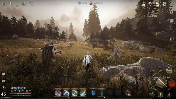 6、正式进入游戏世界,采用侧滑式操作,左手控制移动,右手负责攻击、跳跃等动作指令;