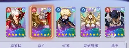 首套推荐阵容由李孤城、李广、红莲、天使缇娜与典韦构成。李广作为核心输出,拥有恐怖的群体伤害能力,在技能准备就绪后可对敌方全体造成大量伤害。李孤城担任副输出,其技能可为队伍提供闪避增益,并对敌人附加致盲效果,既能补充伤害,也为李广创造了安全的输出环境。