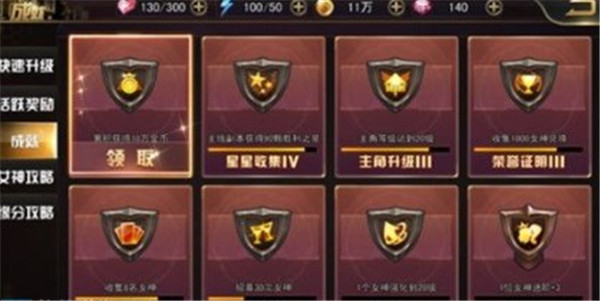 2. 成就系统是获取金币和彩钻等资源的重要方式,玩家还可通过开服奖励与每日登录奖励增加钻石储备,从而召唤心仪的女神角色;