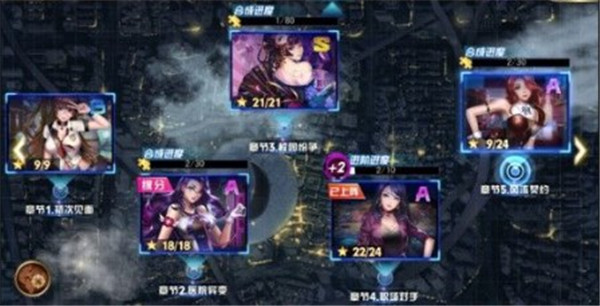 3. 除了经典的卡牌养成要素,游戏还引入了精神与好感度培养体系,设有30个主题与目标各异的关卡,让玩家体验多变的都市冒险旅程;