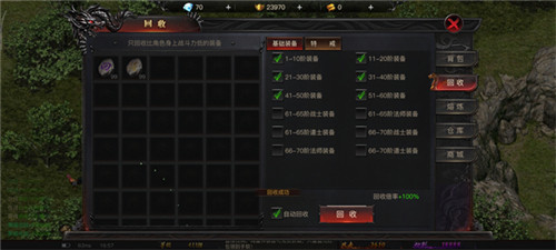 3、游戏内置多项实用智能辅助功能,自动拾取、自动回收还有离线挂机打怪升级等设计都十分贴心。