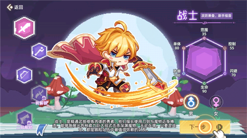 1、进入游戏后首先要选择心仪的游戏职业,再确定角色性别;