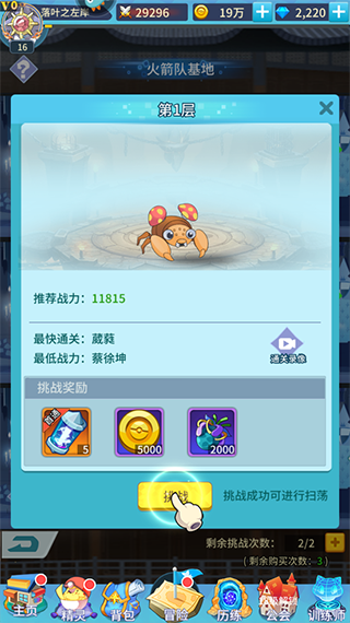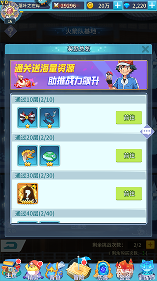1、火箭队基地首次通关可获得进阶石奖励,打通整10层还能额外领取一份专属通关奖励;