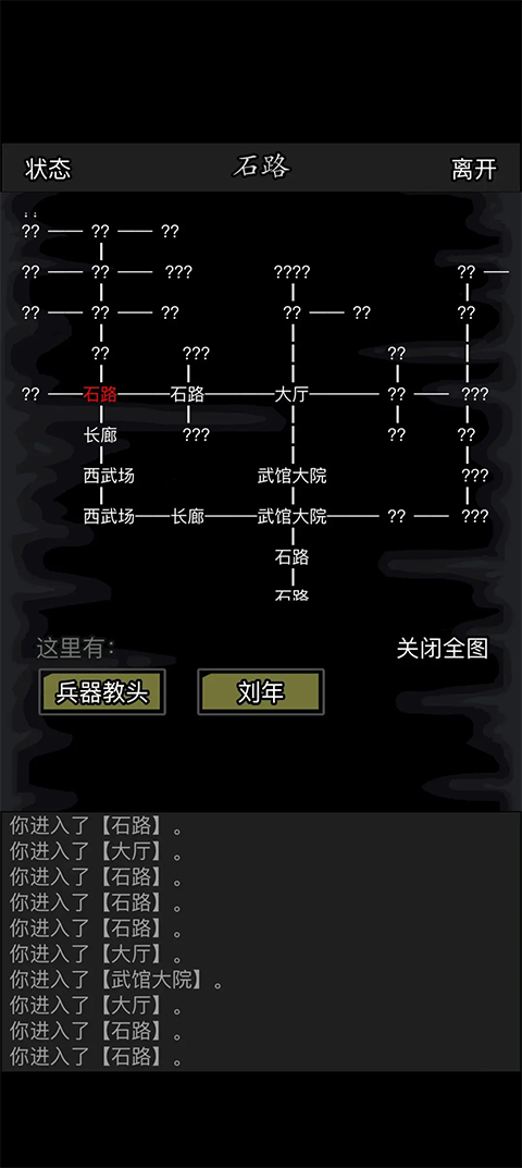 点击江湖,进入江湖往事后即可开启新手村金牛武馆;进入后一路向上挑战,击败张风后不必急于退出,向上移动一格找到朱宇,请教后可获得首个内功“一气功”,装备后可进行打坐;向左移动两步寻到兵器教头。