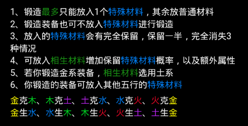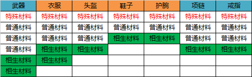 对于头盔、鞋子、护腕、项链、戒指这五个部位,当特殊材料与普通材料不同类时,可能出现无法放置相生材料的情况,即变为方式一,这会降低极品装备概率,需特别注意。