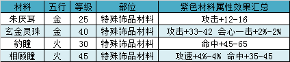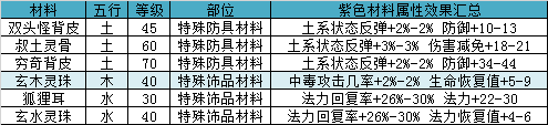 特材类型请参考特殊材料汇总表,表中统计了5至80级五系特殊材料属性(建议到QQ群文件查看)。
