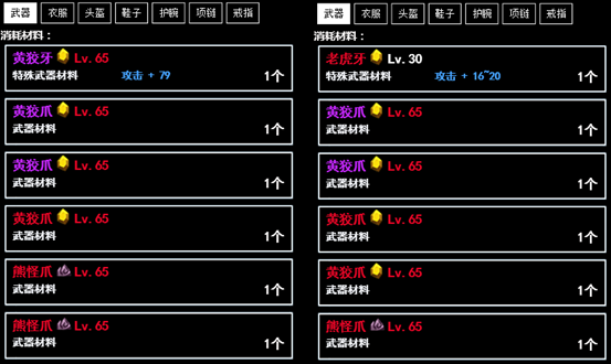 此方式不使用相生材料,会降低极品装备出现概率,且装备缺少相生属性。适用于前期快速升级、缺少相生材料时,或仅为激活图鉴而制作装备。
