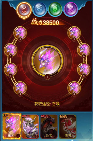 2、实现炎、冰、毒、雷四系神将协同作战,所有神将需通过收集与培养获得;