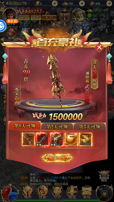 3、完成首充可领取强力打金神器,还有其余多款豪华道具福利;