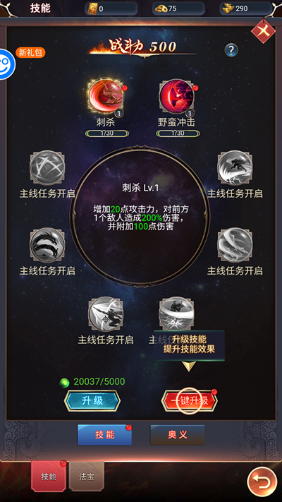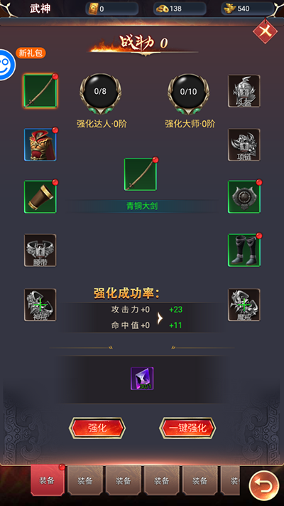 7、定期对穿戴的装备和宝物进行强化升级,可全方位提升角色的各项属性数值;