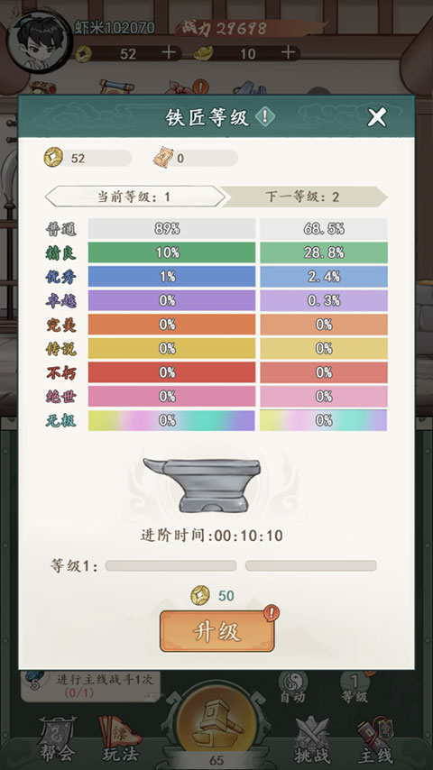 装备还区分不同的品级,游戏早期可以把半数左右的资源投入到铁匠铺升级中。铁匠铺等级越高,玩家能锻造的装备品质上限也越高,产出高品质装备的概率也会同步上升。睡觉前可以安排铁匠铺的升级进程,能让资源利用效率达到最高。
