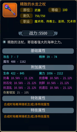 获得瑕疵水龙装备后,加入永久冰晶与副本材料可合成精致水龙装备,成功率100%,属性随机浮动;瑕疵水龙装备可在交易行流通。