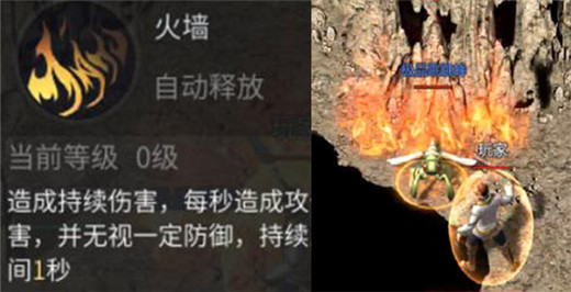 火墙是法师另一个招牌技能,释放火焰元素点燃目标周边地面,对区域内敌人造成持续性伤害。这个技能没有高额的瞬时伤害,持续灼烧的累计伤害效果十分可观,还能在对大范围敌人输出的同时,不影响玩家对主要目标释放其他技能;