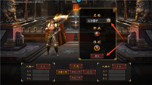 2、跳转至角色创建界面后,选择想要体验的职业,再设置自己的游戏昵称即可完成创建;